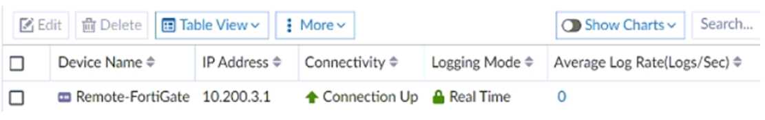 Chosen image shows the device Remote-FortiGate with the IP 10.200.3.1 and a connection status of