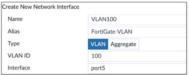 The settings displayed in the image show the creation of a VLAN interface on FortiAnalyzer. The VLAN