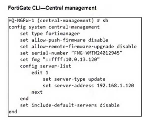 FortiGate HQ-NGFW-1 to contact FortiManager as a FortiGuard Distribution Server (FDS) for