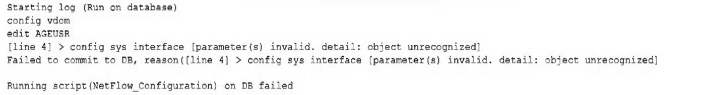 While attempting to push a NetFlow configuration script through the FortiManager policy package: