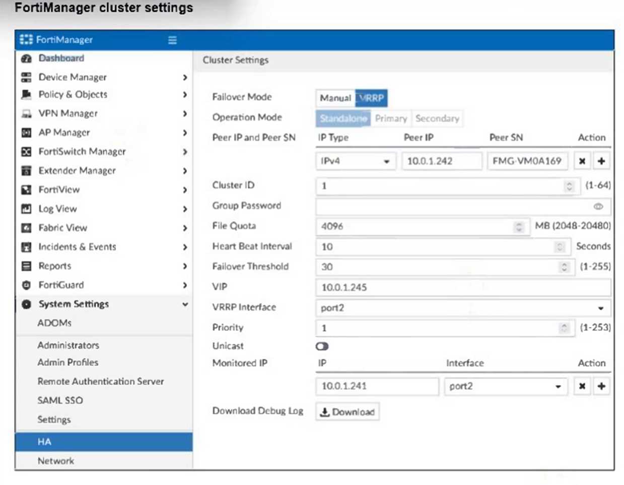 In a FortiManager HA cluster configured with VRRP failover, the failover process is automatic and