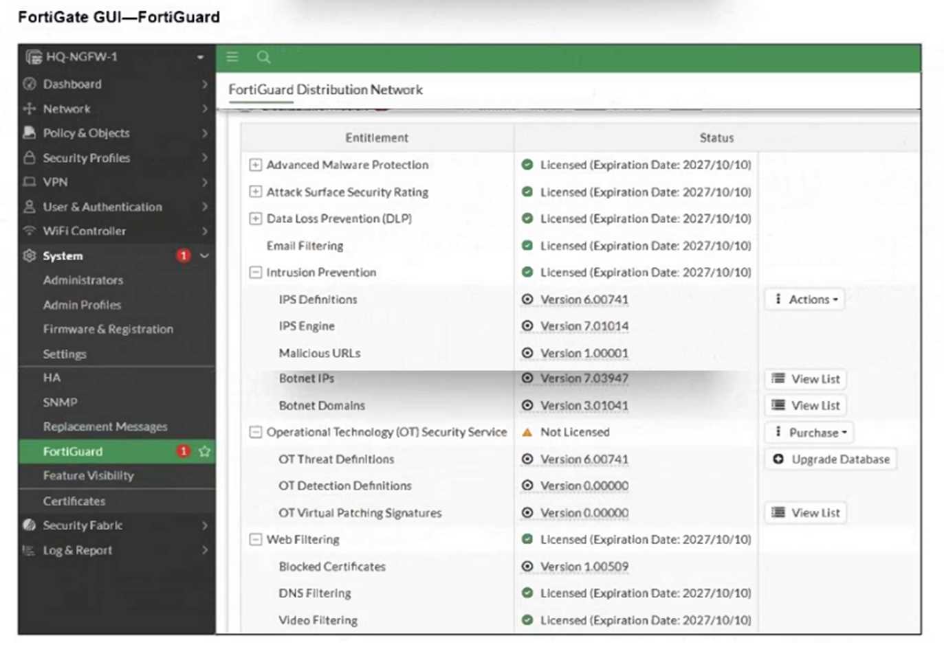FortiGate HQ-NGFW-1 downloads and validates FortiGuard databases from FortiManager which acts