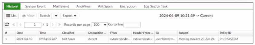 FortiMail will allow only the marketingeexample.com account to access the archived email.