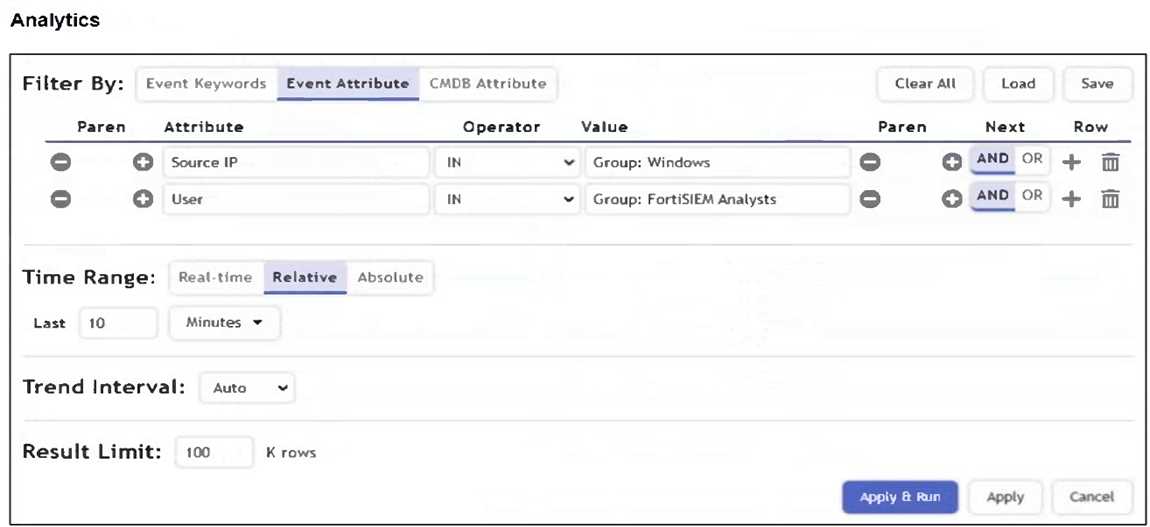 If you group the events by User and Count attributes, how many results will FortiSIEM display?