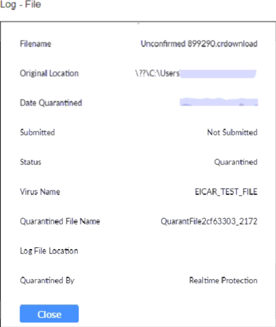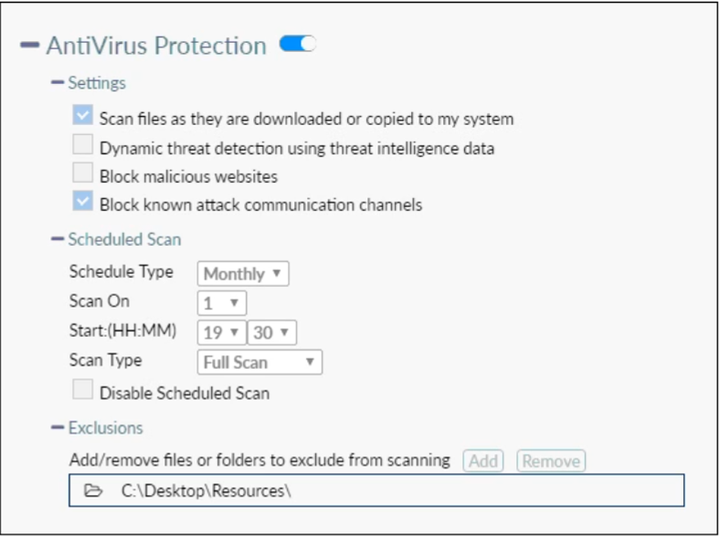 FortiClient scans infected files when the user copies files to the Resources folder.