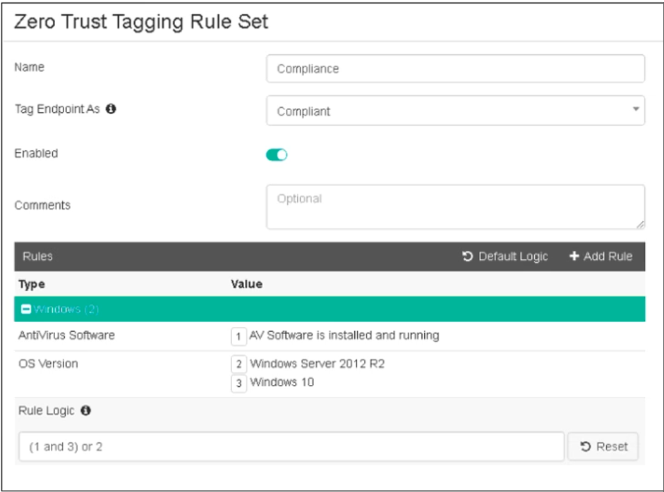 Refer to the exhibit, which shows the Zero Trust Tagging Rule Set configuration.
