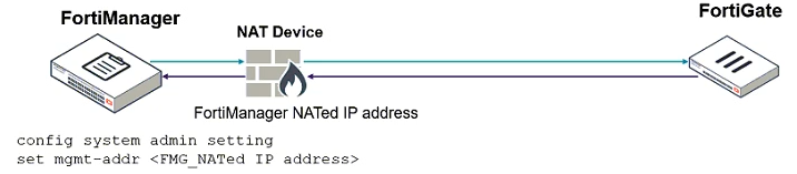 During discovery, FortiManager sets both the FortiManager NATed IP address and NAT device IP address on FortiGate.