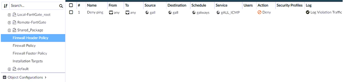 When the Fortinet policy package is created, it automatically assigns the global policies.