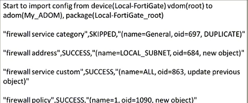 FortiManager ignored the firewall service category General and did not update its database with the value.