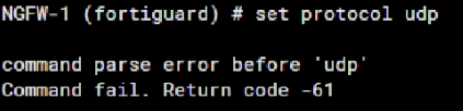 What is the reason you cannot set the protocol to udp in config system fortiguard?
