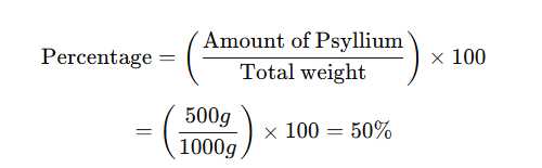 Sincepsylliummakes up500 gout of1000 g (1 kg)of the bulk laxative, it accounts for50%of the total