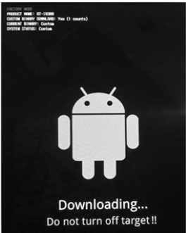 The device pictured below is in Download Mode to attempt a physical acquisition.