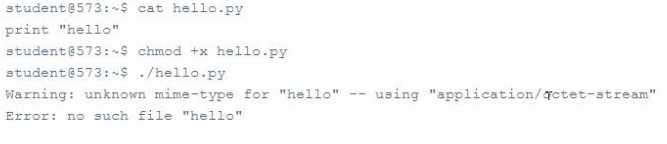 hello.py is missing the line #!/usr/bin/python