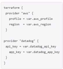 AWS and one for Datadog. Which of the following provider blocks would allow you to do this?