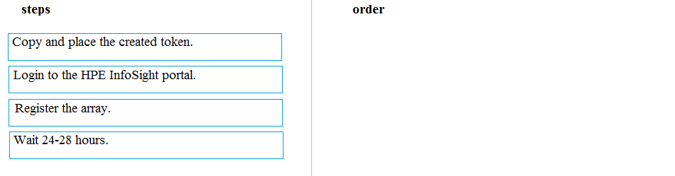 Click and drag the steps on the left into the appropriate order on the right to set up an HPE 3PAR