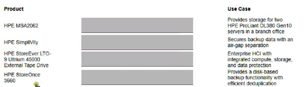 Match the HPE storage products to their use case.