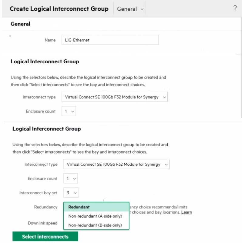 Refer to the exhibit. Your customer wants to define a Logical Interconnect Group (UG) and set the redundancy of the master modules to highly available, but this option is not available. What is a possible reason?