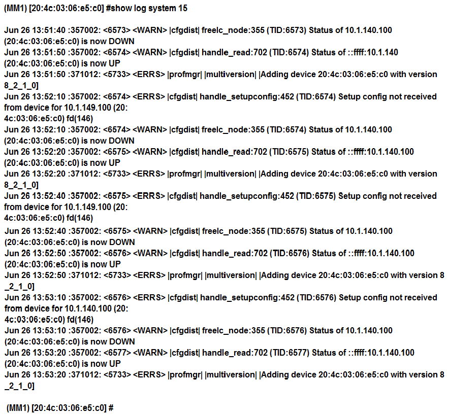Every time the network administrator reboots the Mobility Controller (MC), the MC shows as being