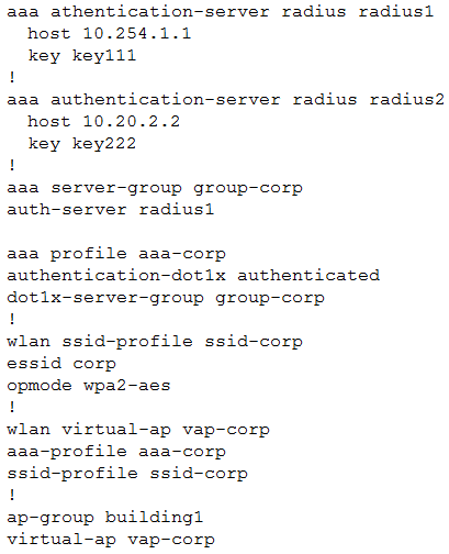 network administrator uses the following script to integrate the WLAN solution with two radius