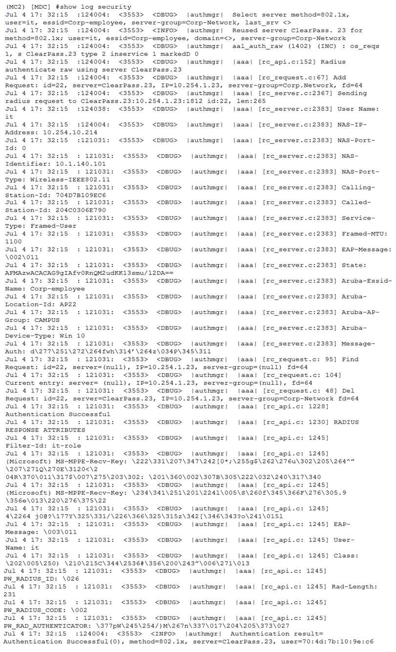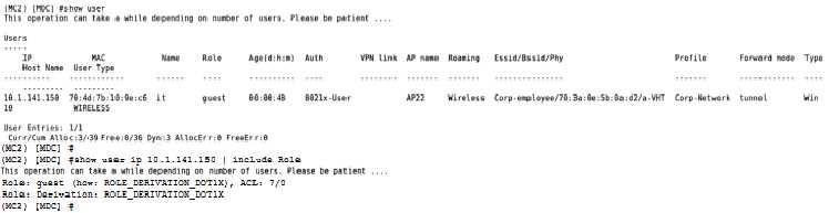 administrator finds the user on the Mobility Master (MM) and reviews the output shown in the