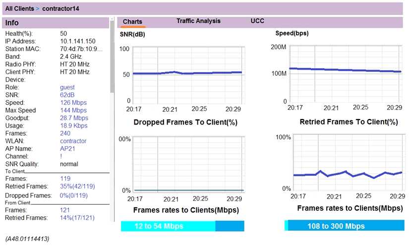 problem with the WLAN. The user’s laptop supports 802.11n in the 2.4 GHz band only. The network