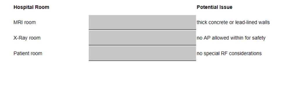 Match each hospital room with a potential issue for the AP design (Each match will be used once. )