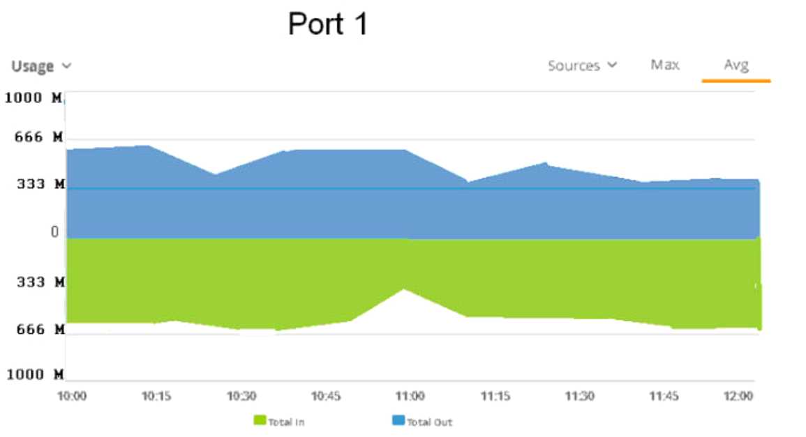 the network, and the results are shown in the exhibit. Each of these ports is a 1Gbps port.