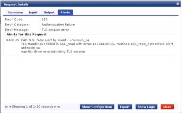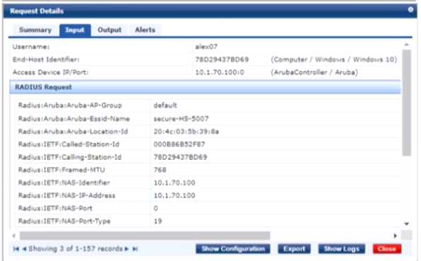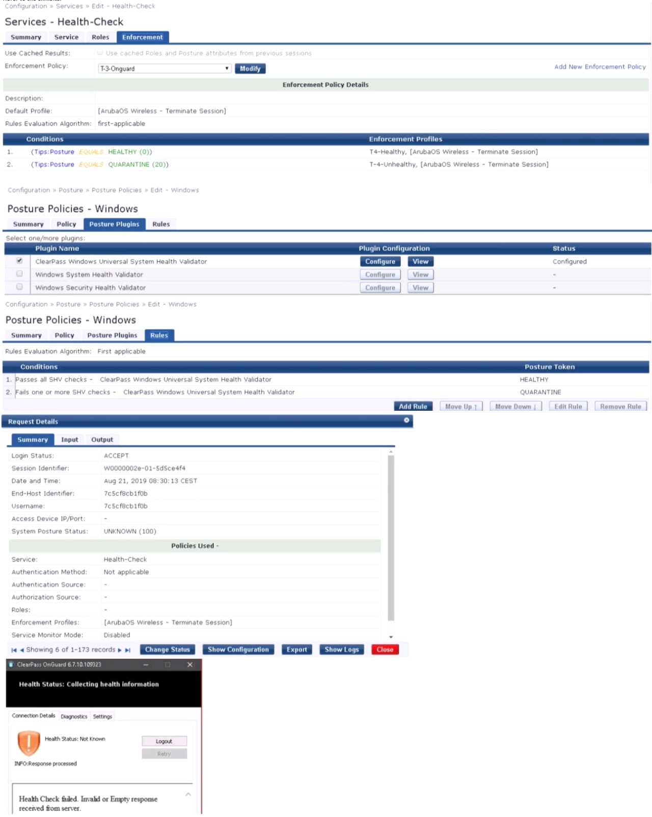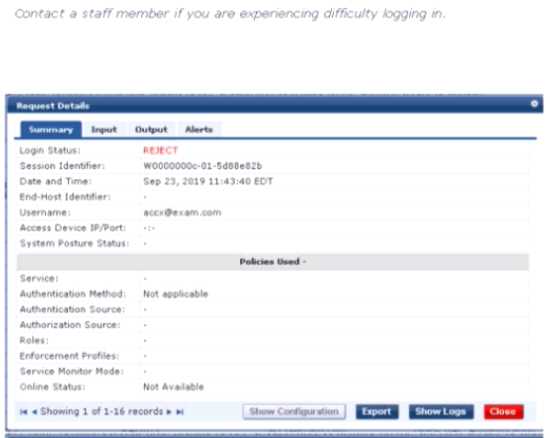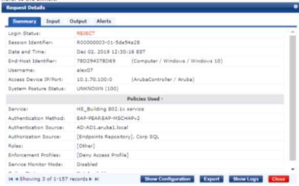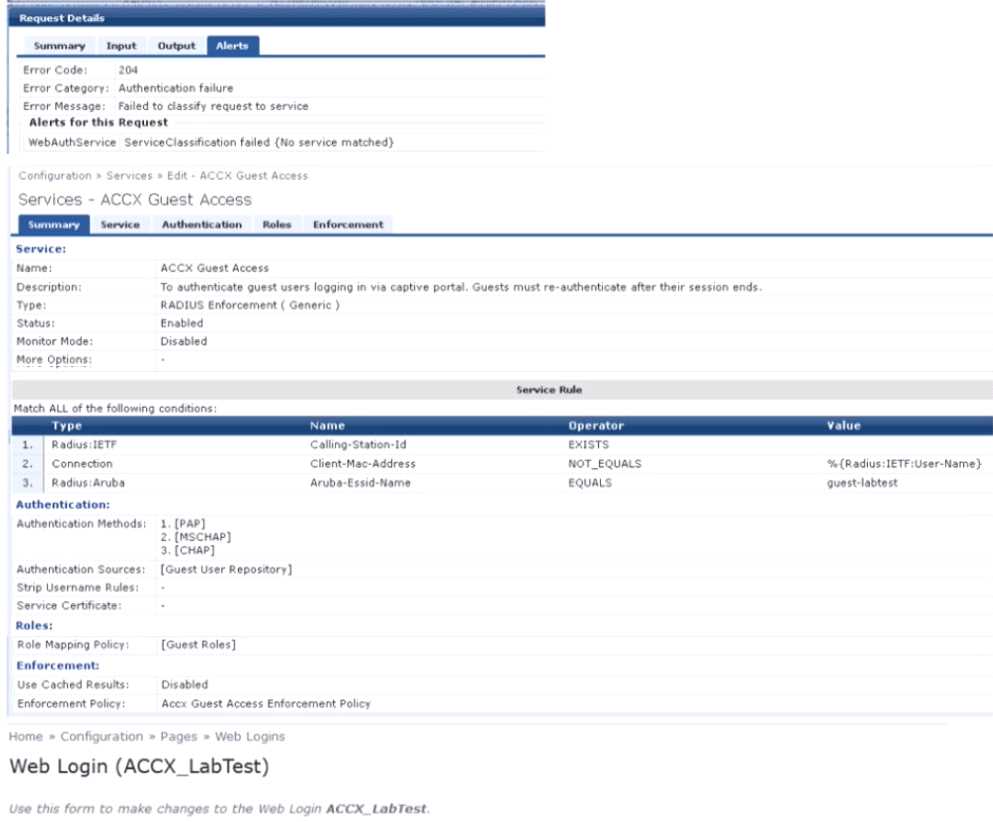 entries in the Event Viewer or Access Tracker for the tests Suspecting that the Aruba Controllers may