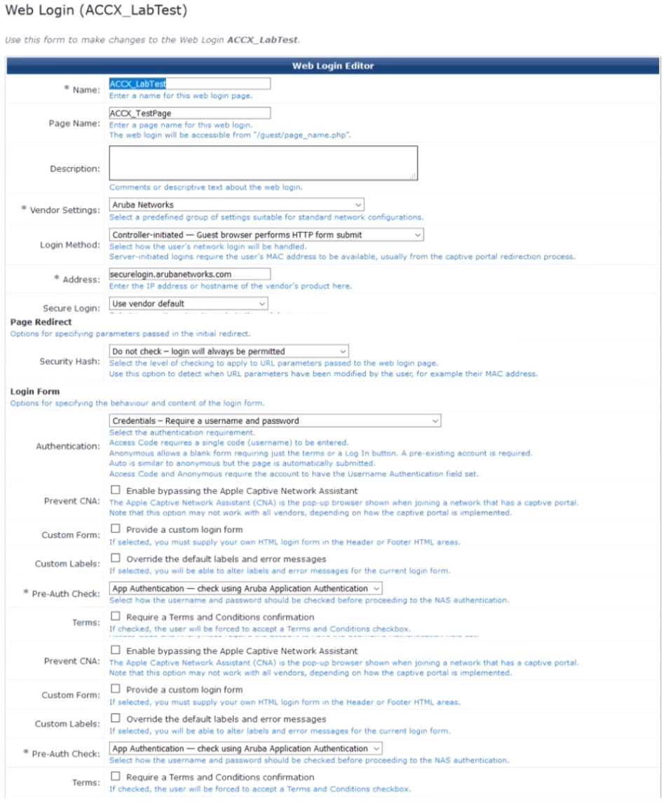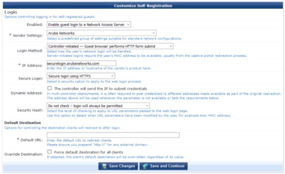 "'.customerdomain.com- on all Aruba Controllers While testing the existing guest Self-Registration