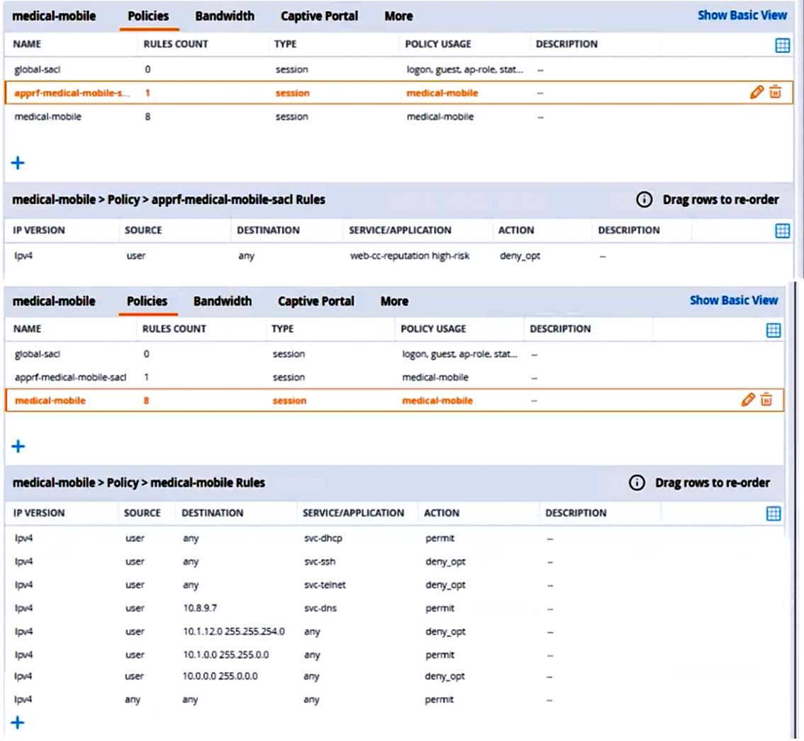 (In the options, rules in a policy are referenced from top to bottom. For example, “medical-mobile”