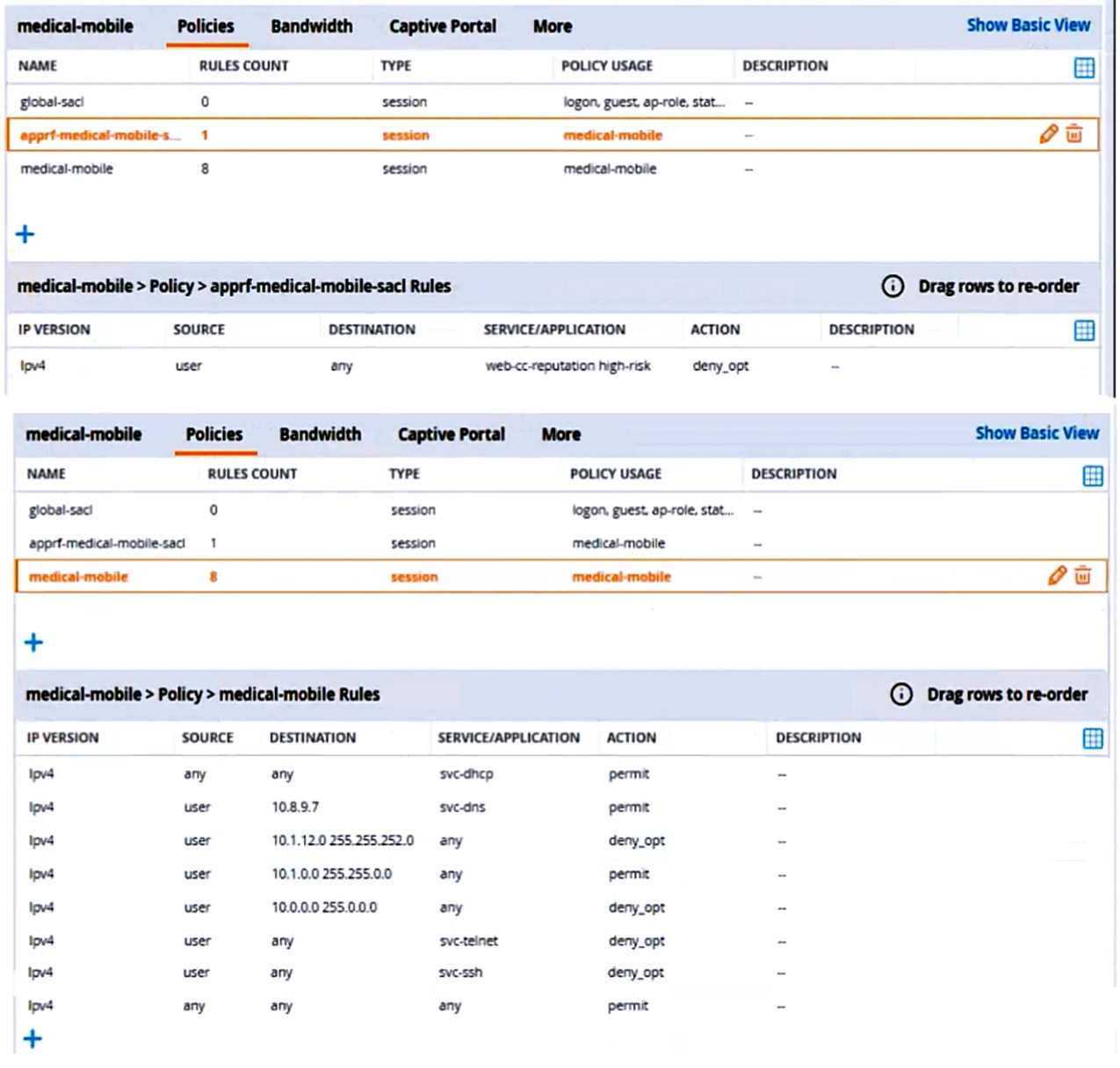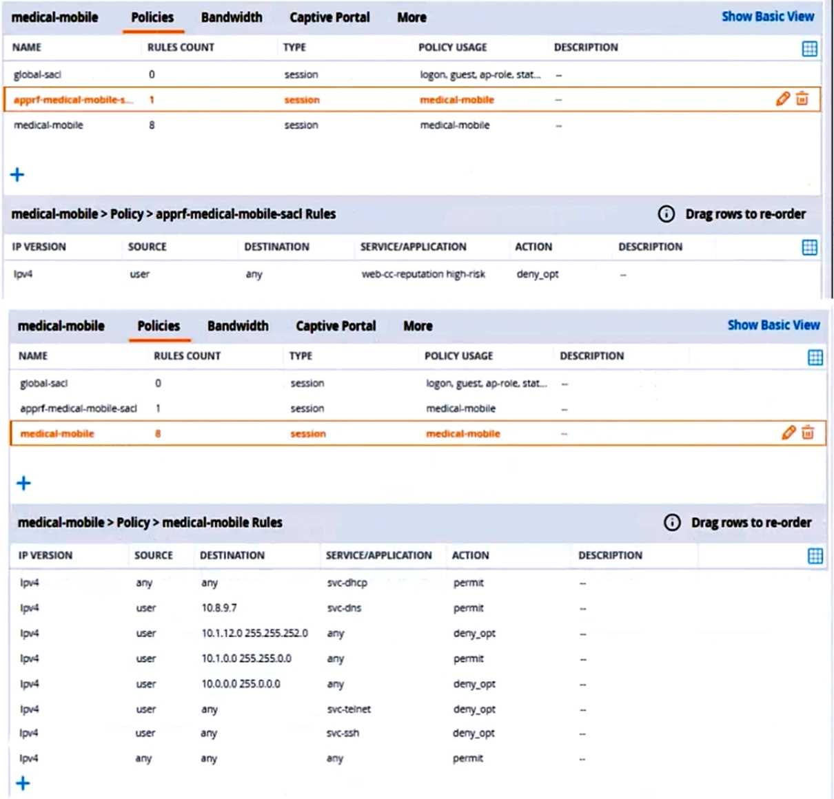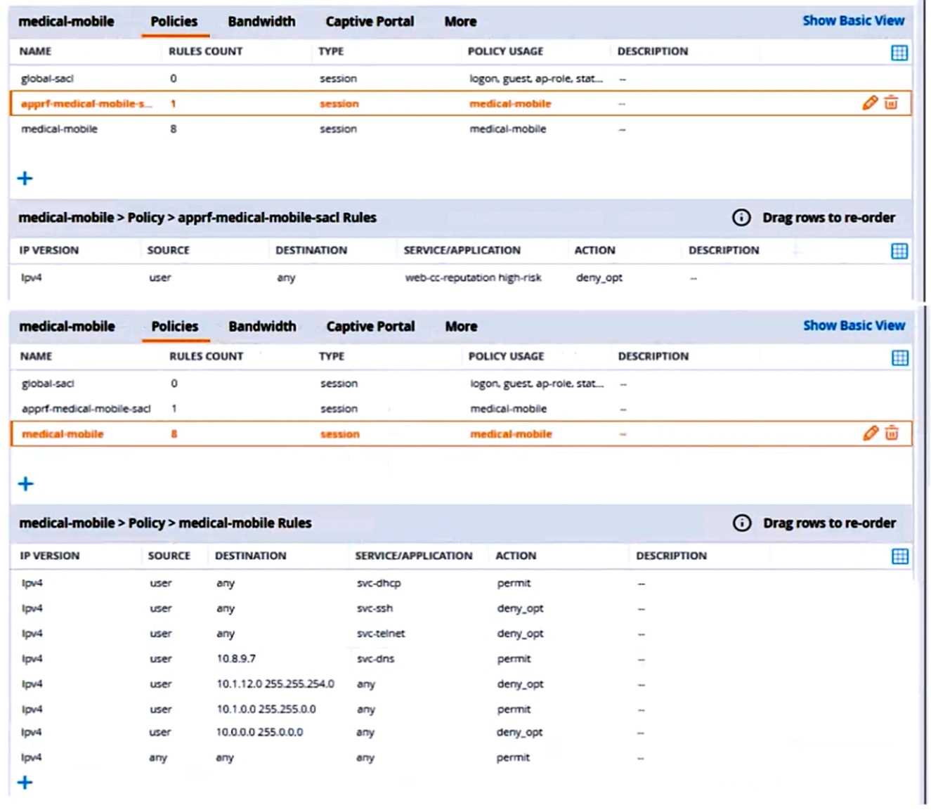 A customer requires these rights for clients in the “medical-mobile” AOS firewall role on Aruba