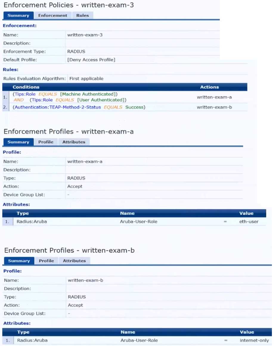 ClearPass deployment for this purpose. Aruba network devices will authenticate wireless and wired