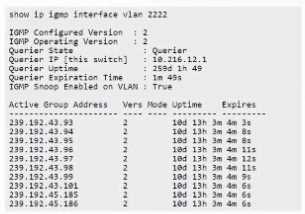 An HPE Aruba Networking CX switch is configured with IGMP using the given output: