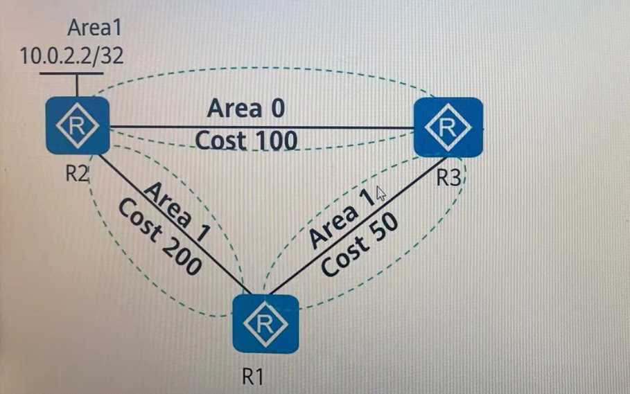 marked in the figure, and the Loopback0 interface of R2 is advertised in area 1, then the cost value of