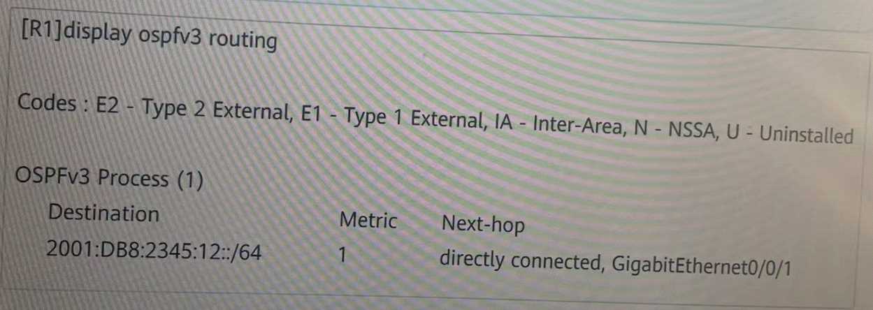 engineer checked the OSPFv3 routing table entry of R1, as shown in the figure, and found that there