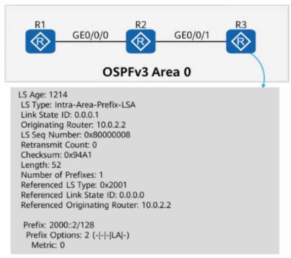 R2 and describes the IPv6 prefix address associated with the Router-LSA.