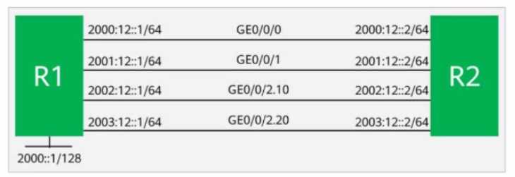 R1 and R2 use directly connected interfaces to establish an EBGP peer relationship. R1 imports 2000::
