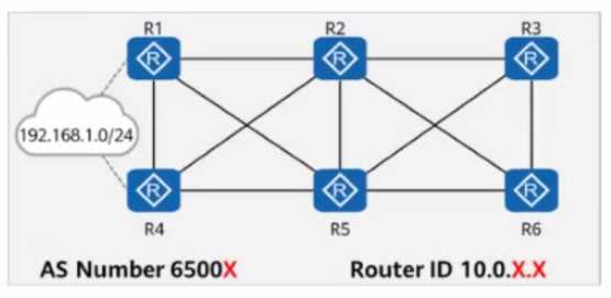 configured on R2 and R5. In AS 65000, R1, R3, R4, and R6 each establish IBGP peer relationships with