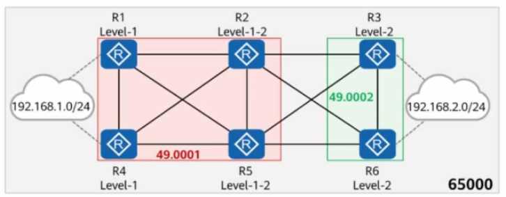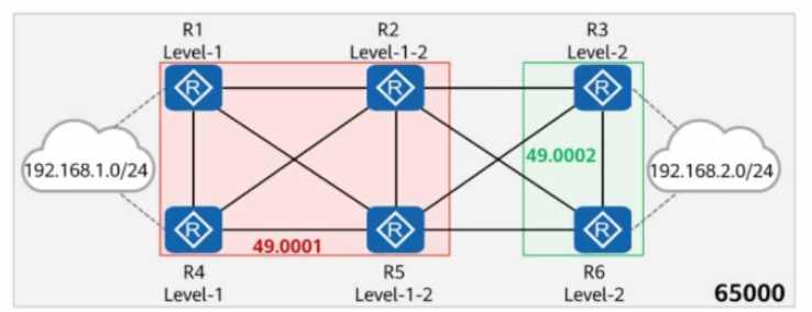 On the network shown in the figure, IS-IS runs on Rl, R2, R4, and R5, and the area ID is 49.0001. IS-IS