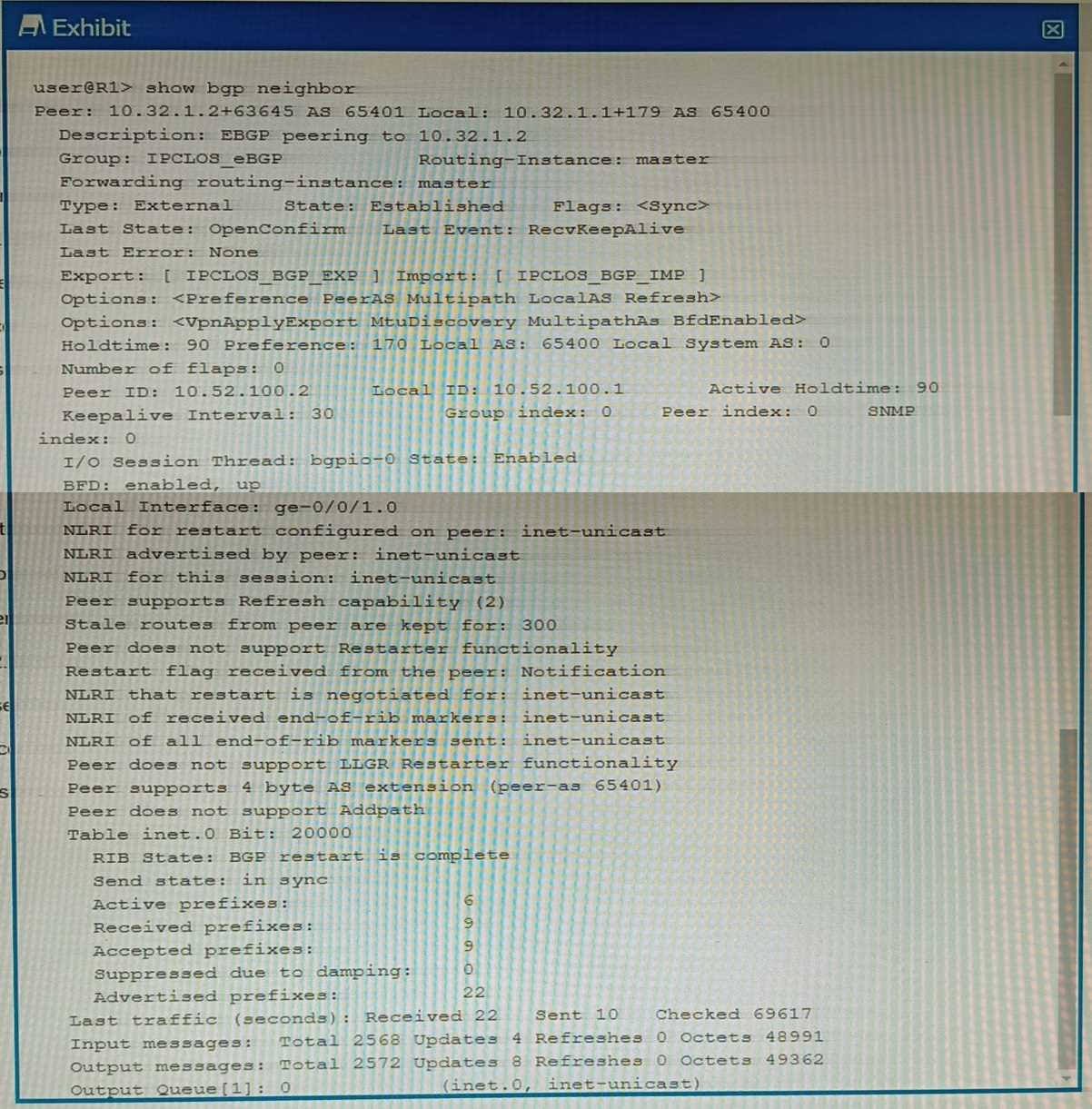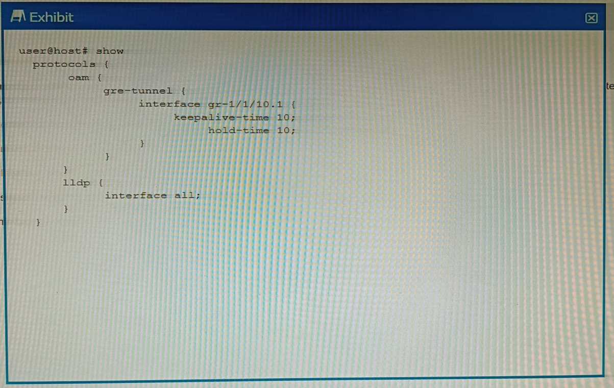 Juniper Networks 3: Configuring Bidirectional Forwarding Detection 4: event link-adjacency-loss |