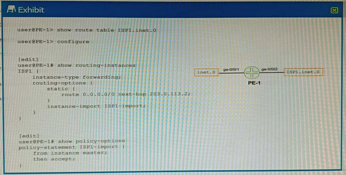 Therefore, the correct answer is B. The inet.0 route table will be imported into the ispi.inet.0 route