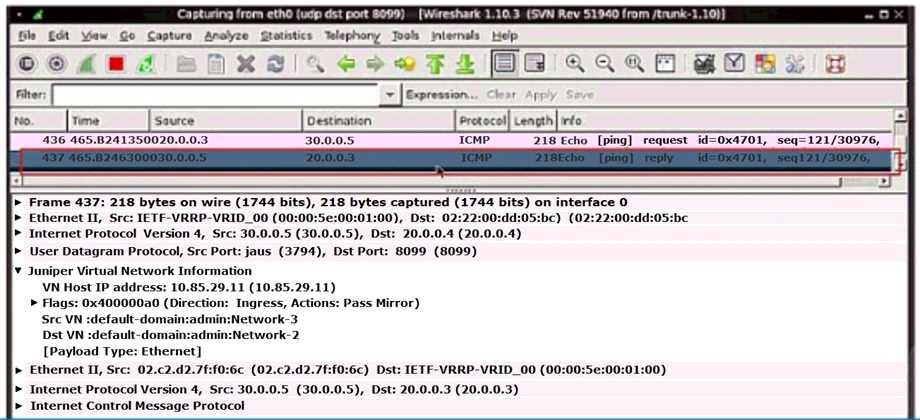 The ping traffic is initiated by a virtual machine with an IP address of 20.0.0.3.