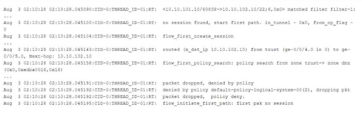 Junos OS when a security policy does not explicitly allow traffic between zones.