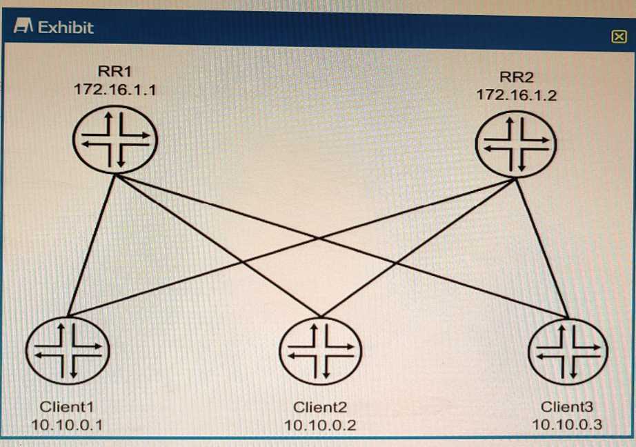 routing-options configuration on the RRs. This enables the RRs to resolve next hops for VPN routes