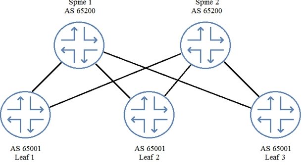Traffic from host1 to host2 will transit a VXLAN tunnel to spine1 or spine2, then a VXLAN tunnel from spine1 or spine2 to leaf3.