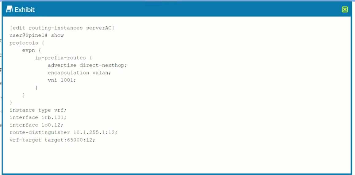 Configure a spine-to-spine EVPN peering as part of the routing instance.