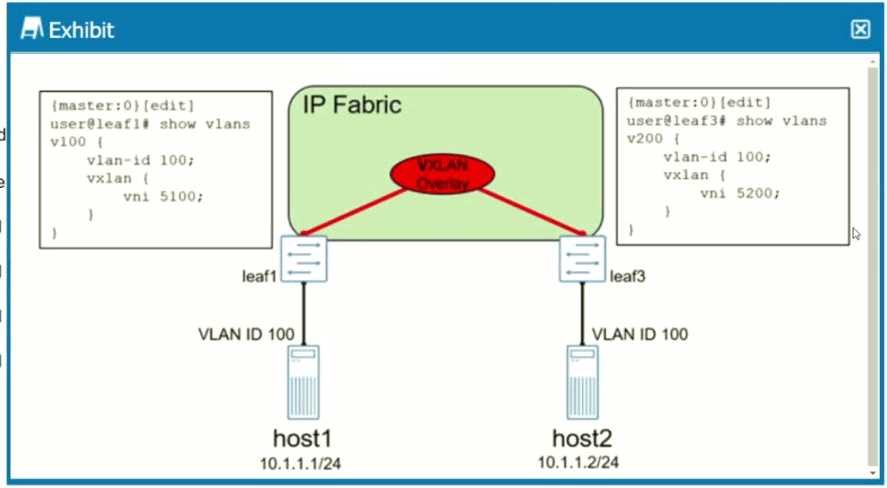 Traffic sent from host1 to host2 will be dropped on leaf1.