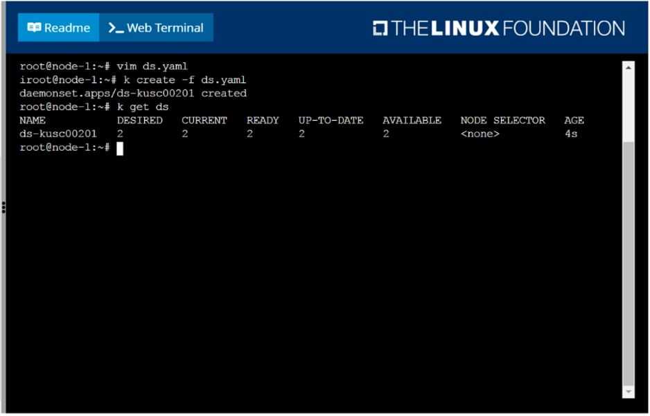 Use DaemonSet to complete this task and use ds-kusc00201 as DaemonSet name.