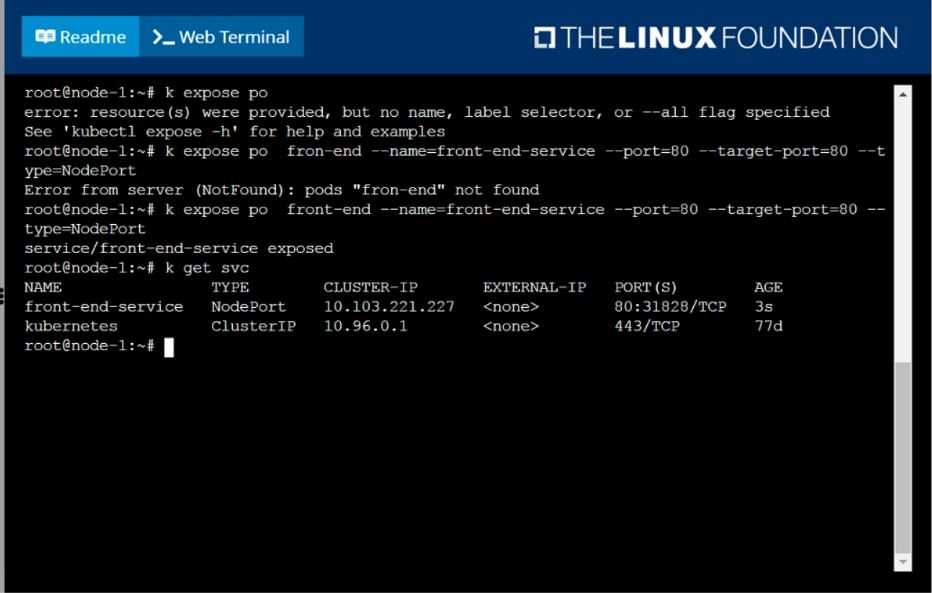 Create and configure the service front-end-service so it's accessible through NodePort and routes to