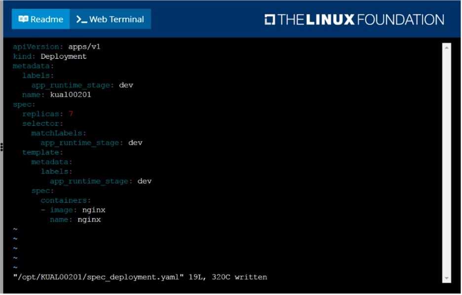 Save a copy of this spec file to /opt/KUAL00201/spec_deployment.yaml